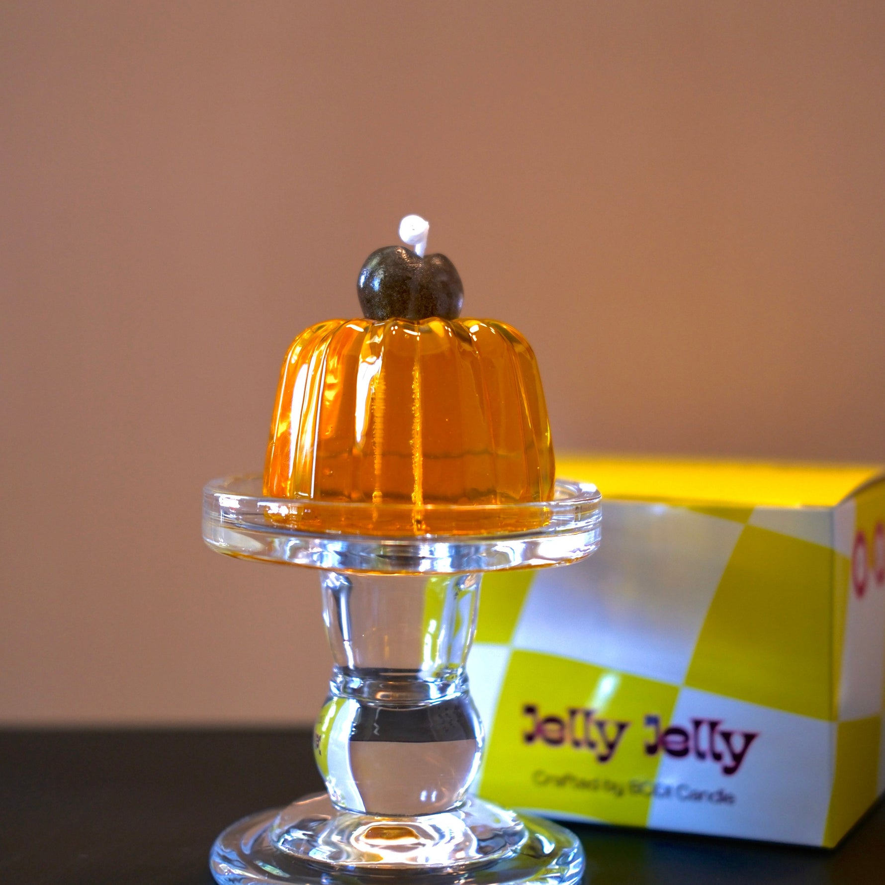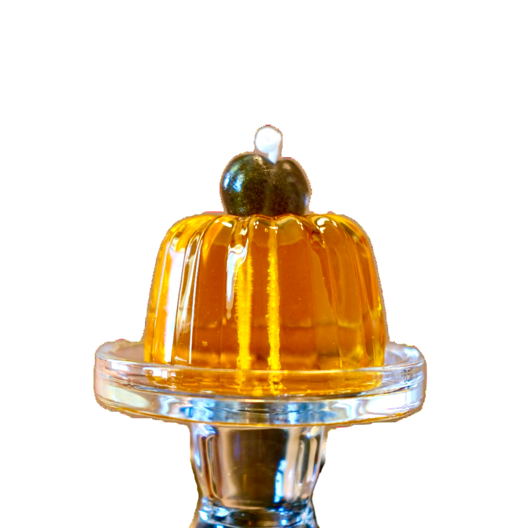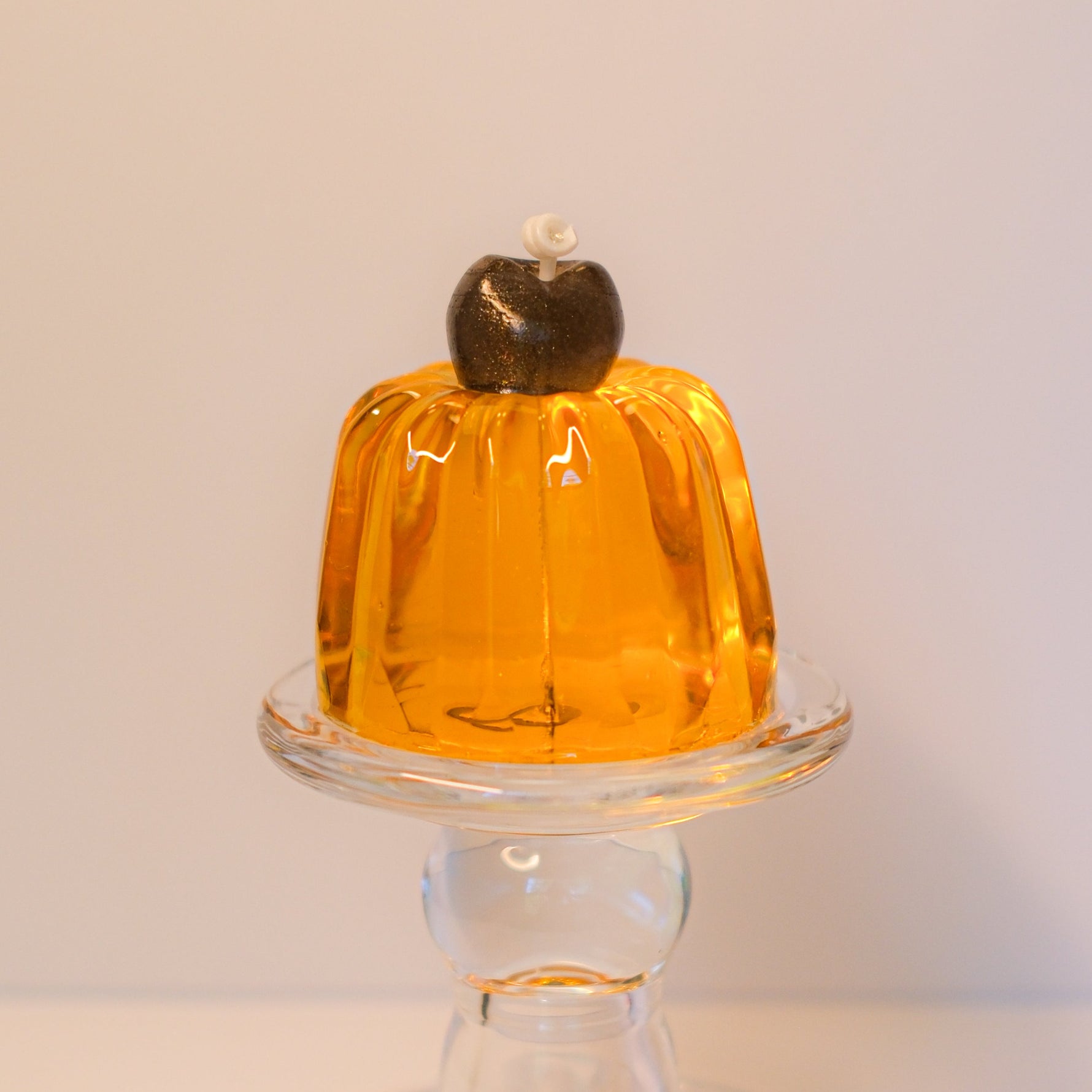 Celebrate the playful spirit of autumn with Pumpkin Spice, a cheerful jelly candle shaped like a pumpkin-orange Canelé and finished with a whimsical dark cherry. Its design evokes glowing jack-o’-lanterns, crisp air, and the cozy mischief of Halloween nights.