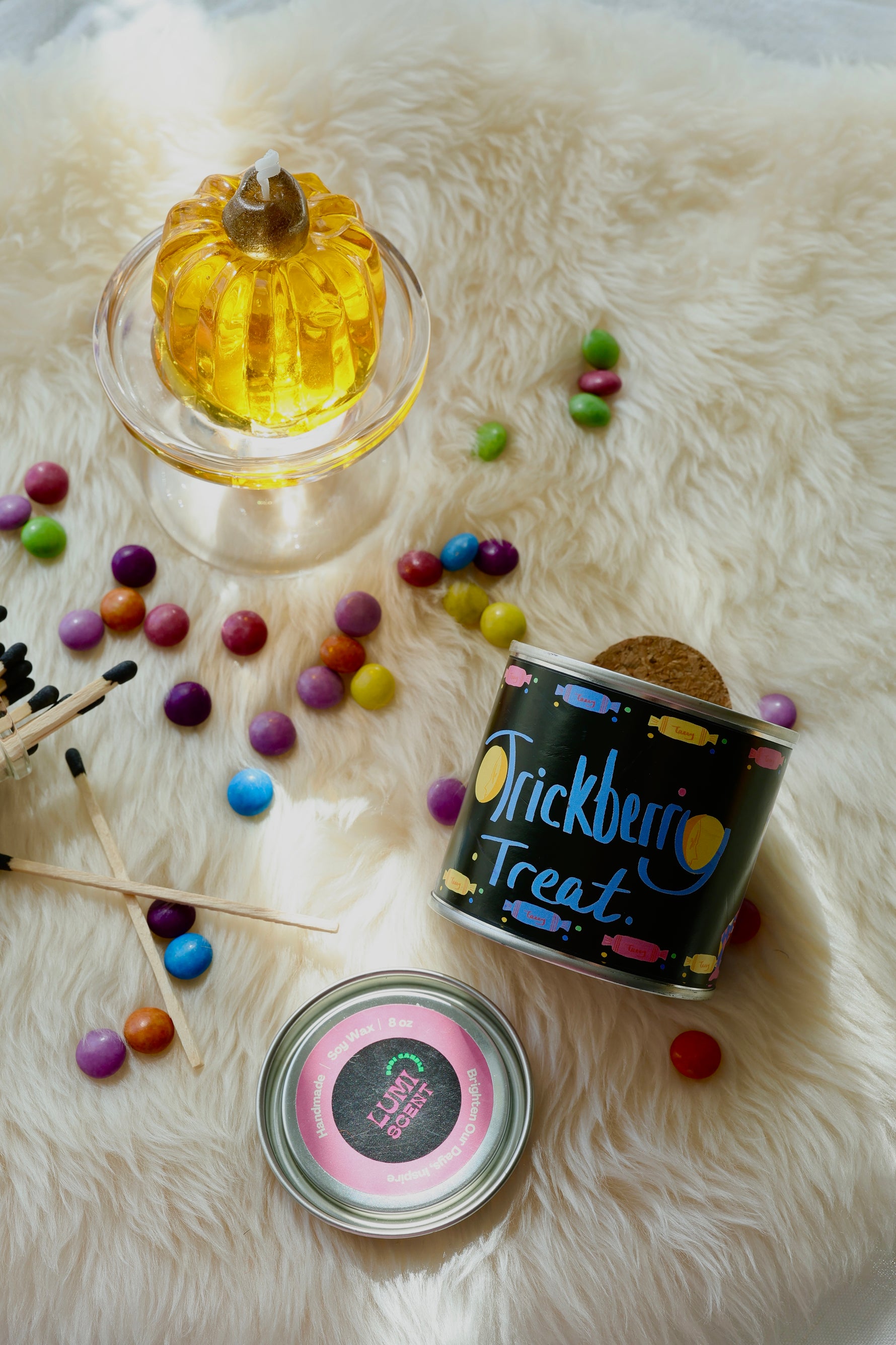 Each set includes either one or three Halloween Lumi Tin candles — featuring our signature designs (Trickberry Treat, Elixir No.13, and Pumpkin Night) — and one Halloween Canelé Jelly Candle: Pumpkin Spice, handcrafted in luminous jelly wax with a candy-like glow.