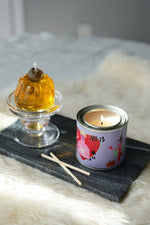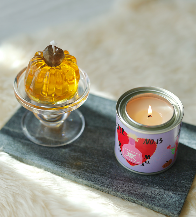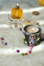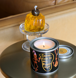 Each candle tells a story: whimsical clowns, potion bottles, and dancing skeletons come to life through intricate illustrations, while the scents weave a tale of sweetness, spice, and a hint of mystery. Hand-poured with golden soy wax and enriched with 10% premium fragrance oils, the Lumi Tins deliver a clean burn and a rich scent throw; the Jelly Canelé complements them with a translucent finish and cozy seasonal aroma.