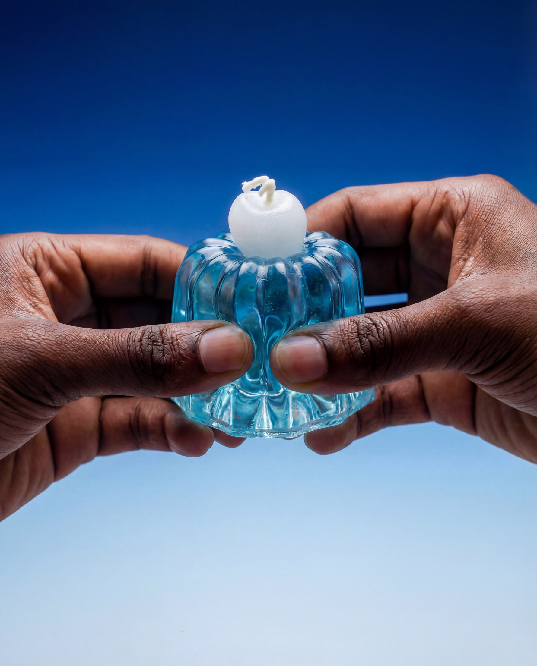 Avoid direct sunlight and high temperatures to preserve the candle’s clarity and shape.