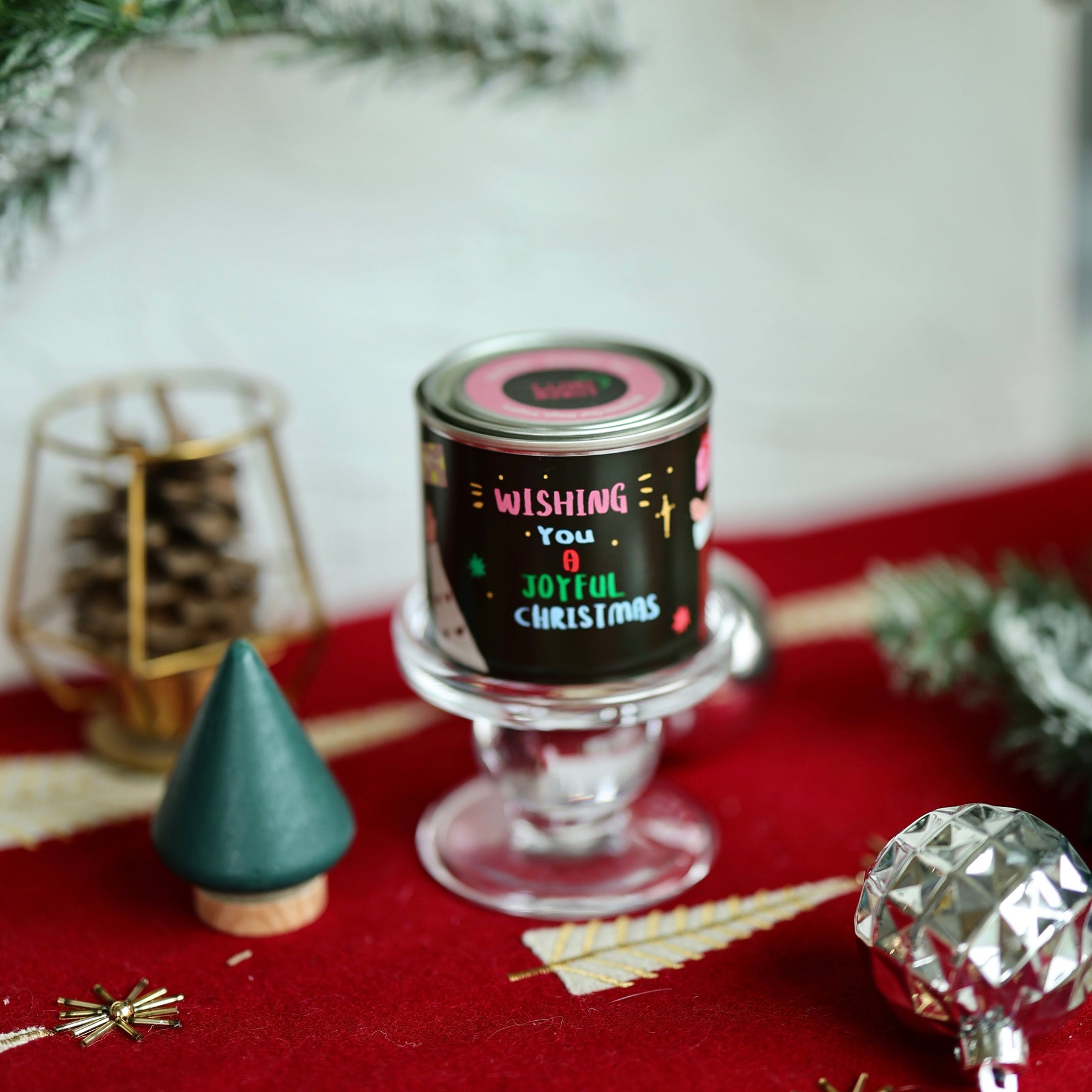 A playful celebration of holiday cheer — four hand-poured soy candles designed to brighten your space with color, sweetness, and joy.